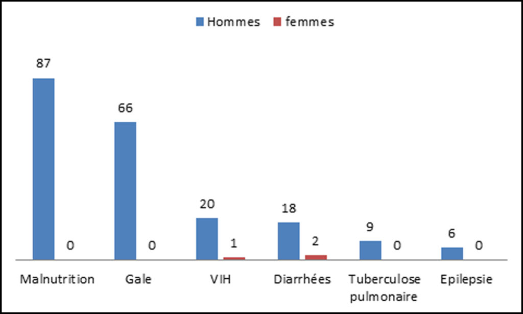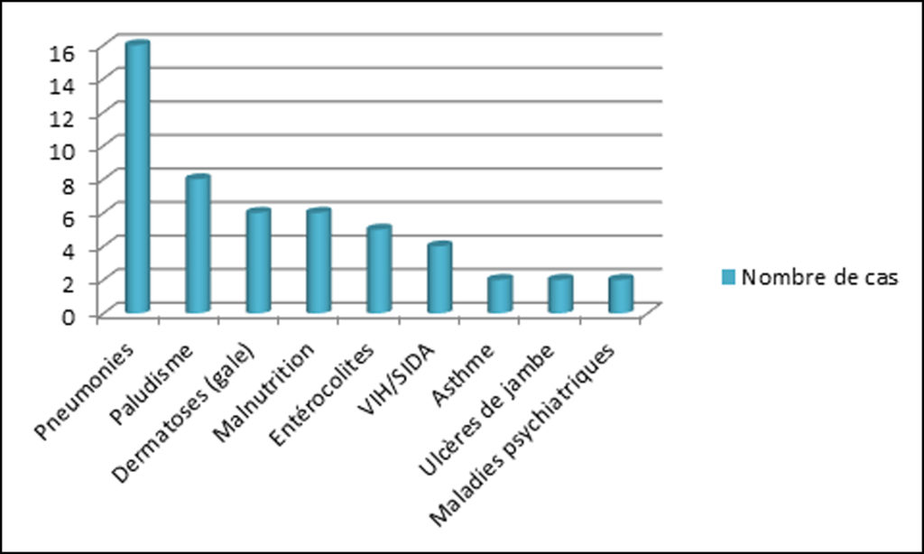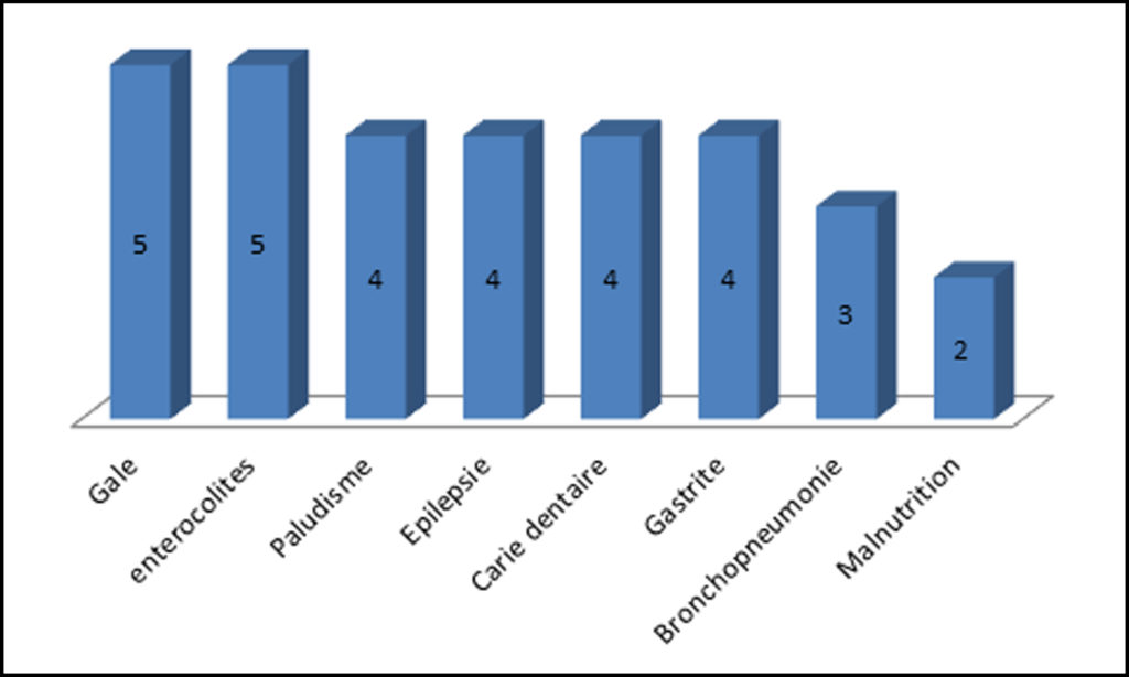 La gale et les entérocolites sont en tête de liste suivies du paludisme, de l épilepsie et des caries dentaires.